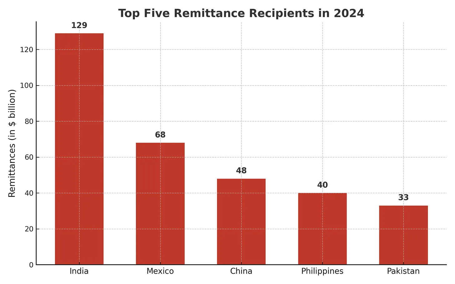 India received $129 billion in remittances in 2024 — the highest in the world.